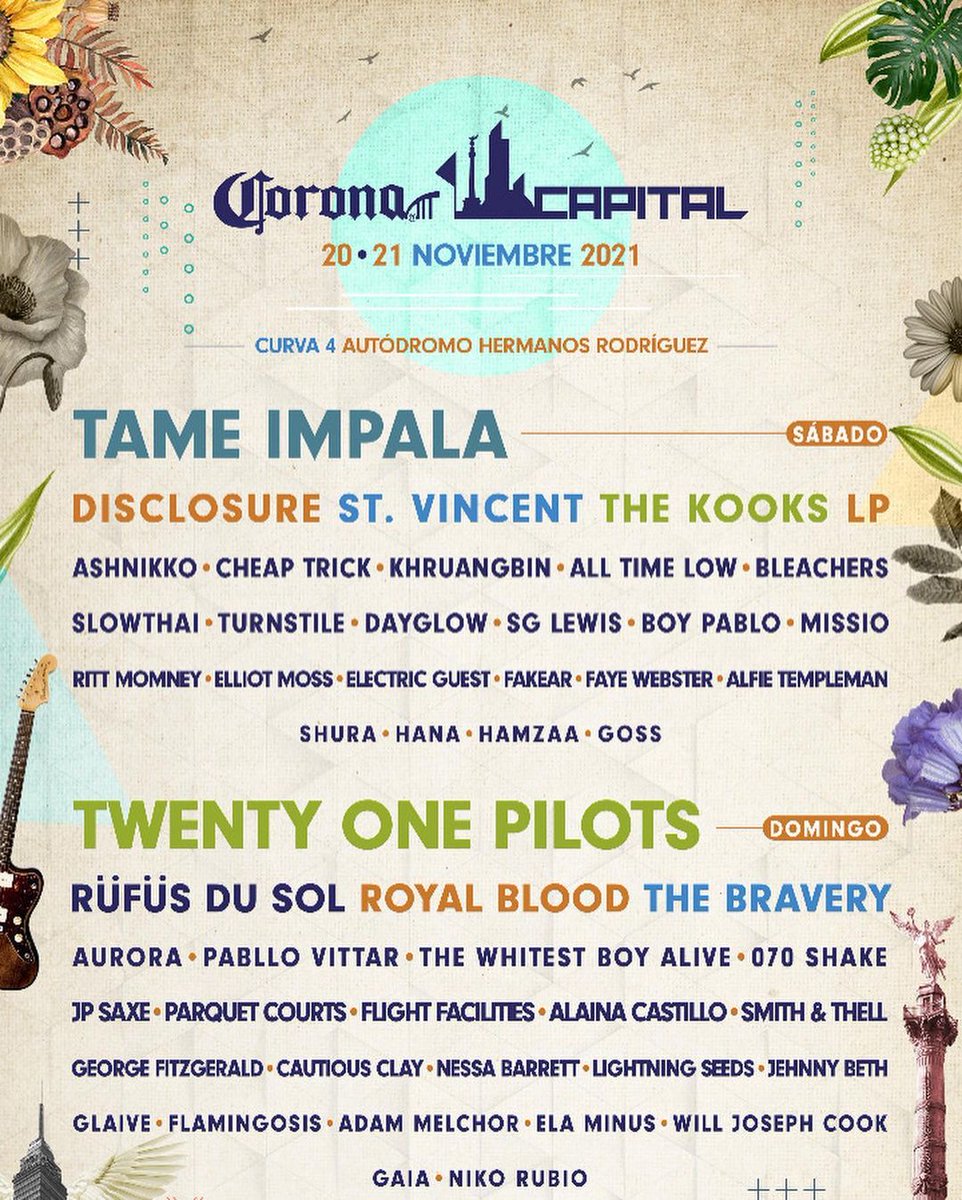 Corona capital 2021 cartel. Cartel oficial del festival Corona Capital 2021 La Ciudad de México sí contempla realizar el festival Corona Capital 2021. Revelan el posible cartel del Corona Capital 2021. Tame Impala Disclosure The Kooks St.